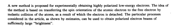 A new method is proposed for experimentally obtaining highly polarized low-energy electrons. The idea of the method is based on transferring the spin orientation of the atomic electron to the free electron by inelastic collision of the atoms, as a result of which the electron is detached. The particular processes considered in the article, as shown by estimates, can be used to obtain polarized electron beams of sufficiently large "brightness".