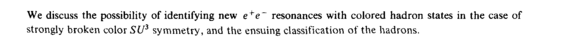 We discuss the possibility of identifying new e+e resonances with colored hadron states in the case of strongly broken color SU3 symmetry, and the ensuing classification of the hadrons.