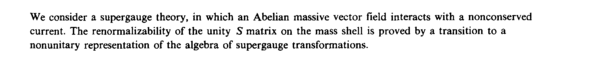 We consider a supergauge theory, in which an Abelian massive vector field interacts with a nonconserved current. The renormalizability of the unity S matrix on the mass shell is proved by a transition to a nonunitary representation of the algebra of supergauge transformations.