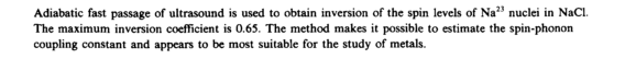 Adiabatic fast passage of ultrasound is used to obtain inversion of the spin levels of Na nuclei in NaCl. The maximum inversion coefficient is 0.65. The method makes it possible to estimate the spin-phonon coupling constant and appears to be most suitable for the study of metals.