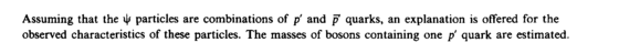 Assuming that the ψ particles are combinations of p' and f? quarks, an explanation is offered for the observed characteristics of these particles. The masses of bosons containing one p' quark are estimated.