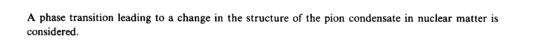 A phase transition leading to a change in the structure of the pion condensate in nuclear matter is considered.