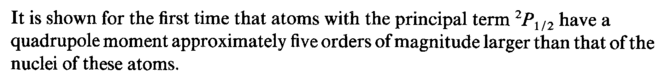 It is shown for the first time that atoms with the principal term 2P1/2 have a quadrupole moment approximately five orders of magnitude larger than that of the nuclei of these atoms.