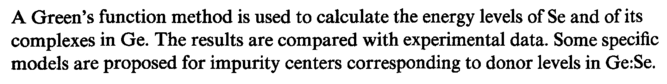 A Green's function method is used to calculate the energy levels of Se and of its complexes in Ge. The results are compared with experimental data. Some specific models are proposed for impurity centers corresponding to donor levels in Ge:Se.