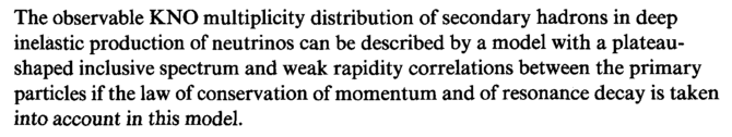 The observable KNO multiplicity distribution of secondary hadrons in deep inelastic production of neutrinos can be described by a model with a plateau-shaped inclusive spectrum and weak rapidity correlations between the primary particles if the law of conservation of momentum and of resonance decay is taken into account in this model.