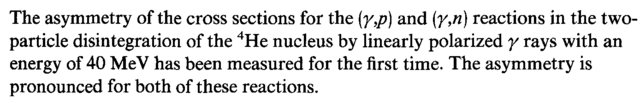 The asymmetry of the cross sections for the (γ,ρ) and (γ,η) reactions in the two-particle disintegration of the 4He nucleus by linearly polarized γ rays with an energy of 40 MeV has been measured for the first time. The asymmetry is pronounced for both of these reactions.