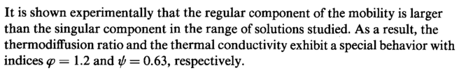 It is shown experimentally that the regular component of the mobility is larger than the singular component in the range of solutions studied. As a result, the thermodiiFusion ratio and the thermal conductivity exhibit a special behavior with indices φ =1.2 and ψ = 0.63, respectively.