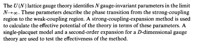 The U (Ν) lattice gauge theory identifies N gauge-invariant parameters in the limit iV-^oo. These parameters describe the phase transition from the strong-coupling region to the weak-coupling region. A strong-coupling-expansion method is used to calculate the effective potential of the theory in terms of these parameters. A single-placquet model and a second-order expansion for a Z>-dimensional gauge theory are used to test the effectiveness of the method.