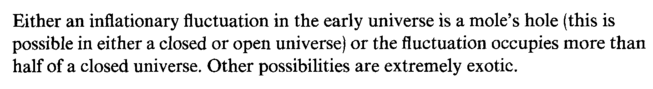 Either an inflationary fluctuation in the early universe is a mole's hole (this is possible in either a closed or open universe) or the fluctuation occupies more than half of a closed universe. Other possibilities are extremely exotic.