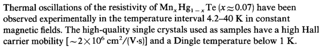 Thermal oscillations of the resistivity of Mn^Hgj _xTe (x ^0.07) have been observed experimentally in the temperature interval 4.2-40 К in constant magnetic fields. The high-quality single crystals used as samples have a high Hall carrier mobility [~2χ 106 cm2/(V«s)] and a Dingle temperature below 1 K.