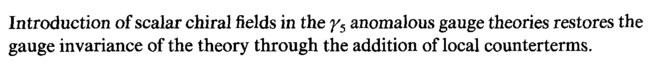 Introduction of scalar chiral fields in the γ5 anomalous gauge theories restores the gauge invariance of the theory through the addition of local counterterms.