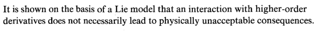 It is shown on the basis of a Lie model that an interaction with higher-order derivatives does not necessarily lead to physically unacceptable consequences.