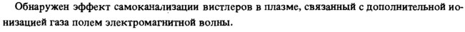 Обнаружен эффект самоканализации вистлеров в плазме, связанный с дополнительной ионизацией газа полем электромагнитной волны.
