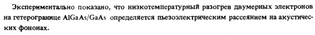 Экспериментально показано, что низкотемпературный разогрев двумерных электронов на гетерогранице AlGaAs/GaAs определяется пьезоэлектрическим рассеянием на акустических фононах.