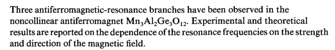 Three antiferromagnetic-resonance branches have been observed in the noncollinear antiferromagnet íÐÚá120Å3012. Experimental and theoretical results are reported on the dependence of the resonance frequencies on the strength and direction of the magnetic field.