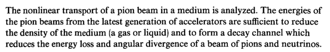The nonlinear transport of a pion beam in a medium is analyzed. The energies of the pion beams from the latest generation of accelerators are sufficient to reduce the density of the medium (a gas or liquid) and to form a decay channel which reduces the energy loss and angular divergence of a beam of pions and neutrinos.