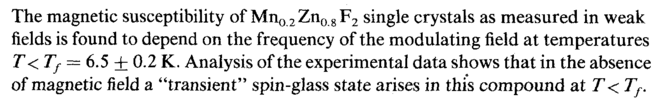 The magnetic susceptibility of Mn0 2Zn0 gF2 single crystals as measured in weak fields is found to depend on the frequency of the modulating field at temperatures T< Tf ~ 6.5 ± 0.2 K. Analysis of the experimental data shows that in the absence of magnetic field a "transient" spin-glass state arises in this compound at T< Tft