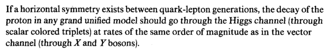 If a horizontal symmetry exists between quark-lepton generations, the decay of the proton in any grand unified model should go through the Higgs channel (through scalar colored triplets) at rates of the same order of magnitude as in the vector channel (through X and Y bosons).