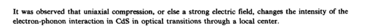 It was observed that uniaxial compression, or else a strong electric field, changes the intensity of the eleetron-phonon interaction in CdS in optical transitions through a local center.