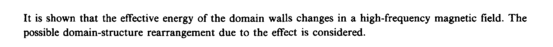 It is shown that the effective energy of the domain walls changes in a high-frequency magnetic field. The possible domain-structure rearrangement due to the effect is considered.