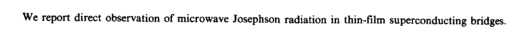 We report direct observation of microwave Josephson radiation in thin-film superconducting bridges.