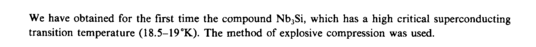 We have obtained for the first time the compound Nb3Si, which has a high critical superconducting transition temperature (18.5-19°K). The method of explosive compression was used.