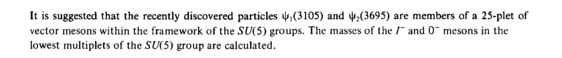 It is suggested that the recently discovered particles ψι(3105) and ψ2(3695) are members of a 25-plet of vector mesons within the framework of the 5(7(5) groups. The masses of the /" and 0" mesons in the lowest multiplets of the SU(5) group are calculated.