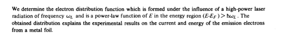 We determine the electron distribution function which is formed under the influence of a high-power laser radiation of frequency and is a power-law function of Ε in the energy region (E-Ep) > hoii. The obtained distribution explains the experimental results on the current and energy of the emission electrons from a metal foil.
