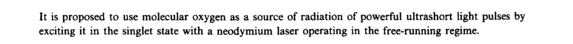 It is proposed to use molecular oxygen as a source of radiation of powerful ultrashort light pulses by exciting it in the singlet state with a neodymium laser operating in the free-running regime.