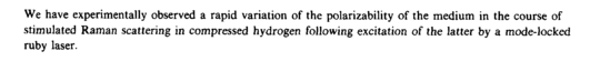 We have experimentally observed a rapid variation of the polarizability of the medium in the course of stimulated Raman scattering in compressed hydrogen following excitation of the latter by a mode-locked ruby laser.
