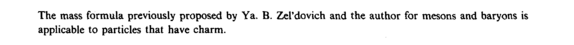 The mass formula previously proposed by Ya. B. ZePdovich and the author for mesons and baryons is applicable to particles that have charm.