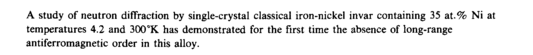 A study of neutron diffraction by single-crystal classical iron-nickel invar containing 35 at.% Ni at temperatures 4.2 and 300°K has demonstrated for the first time the absence of long-range antiferromagnetic order in this alloy.