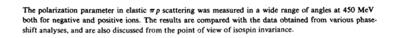 The polarization parameter in elastic π ρ scattering was measured in a wide range of angles at 450 MeV both for negative and positive ions. The results are compared with the data obtained from various phase-shift analyses, and are also discussed from the point of view of isospin in variance.