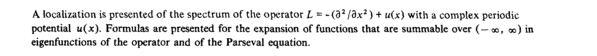 A localization is presented of the spectrum of the operator L = -(θ2/Эх2) + u{x) with a complex periodic potential u{x). Formulas are presented for the expansion of functions that are summable over (—00, <») in eigenfunctions of the operator and of the Parseval equation.