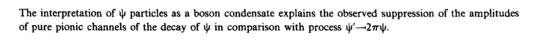 The interpretation of ψ particles as a boson condensate explains the observed suppression of the amplitudes of pure pionic channels of the decay of ψ in comparison with process ψ'—>2ττψ.
