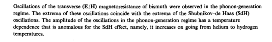 Oscillations of the transverse (E1H) magnetoresistance of bismuth were observed in the phonon-generation regime. The extrema of these oscillations coincide with the extrema of the Shubnikov-de Haas (SdH) oscillations. The amplitude of the oscillations in the phonon-generation regime has a temperature dependence that is anomalous for the SdH effect, namely, it increases on going from helium to hydrogen temperatures.