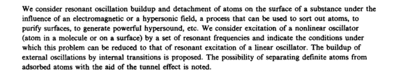 We consider resonant oscillation buildup and detachment of atoms on the surface of a substance under the influence of an electromagnetic or a hypersonic field, a process that can be used to sort out atoms, to purify surfaces, to generate powerful hypersound, etc. We consider excitation of a nonlinear oscillator (atom in a molecule or on a surface) by a set of resonant frequencies and indicate the conditions under which this problem can be reduced to that of resonant excitation of a linear oscillator. The buildup of external oscillations by internal transitions is proposed. The possibility of separating definite atoms from adsorbed atoms with the aid of the tunnel effect is noted.