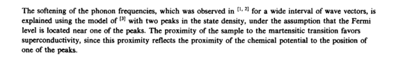 The softening of the phonon frequencies, which was observed in [1*23 for a wide interval of wave vectors, is explained using the model of [3) with two peaks in the state density, under the assumption that the Fermi level is located near one of the peaks. The proximity of the sample to the martensitic transition favors superconductivity, since this proximity reflects the proximity of the chemical potential to the position of one of the peaks.