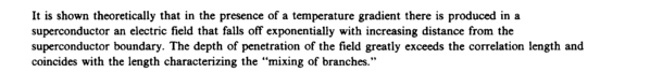 It is shown theoretically that in the presence of a temperature gradient there is produced in a superconductor an electric field that falls off exponentially with increasing distance from the superconductor boundary. The depth of penetration of the field greatly exceeds the correlation length and coincides with the length characterizing the "mixing of branches."