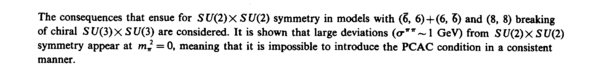 The consequences that ensue for St7(2)X SU(2) symmetry in models with (E, 6)+ (6, 5) and (8, 8) breaking of chiral St/(3)X SUQ) are considered. It is shown that large deviations (crV7r~ 1 GeV) from SU(2)XSU(2) symmetry appear at mff2 = 0, meaning that it is impossible to introduce the PCAC condition in a consistent manner.