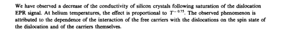 We have observed a decrease of the conductivity of silicon crystals following saturation of the dislocation EPR signal. At helium temperatures, the effect is proportional to T~ 015. The observed phenomenon is attributed to the dependence of the interaction of the free carriers with the dislocations on the spin state of the dislocation and of the carriers themselves.