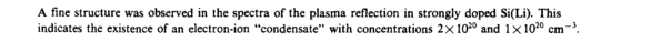 A fine structure was observed in the spectra of the plasma reflection in strongly doped Si(Li). This indicates the existence of an electron-ion "condensate" with concentrations 2 χ 1020 and 1 χ 1020 cm-3.