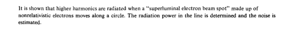 It is shown that higher harmonics are radiated when a "superluminal electron beam spot" made up of nonrelativistic electrons moves along a circle. The radiation power in the line is determined and the noise is estimated.