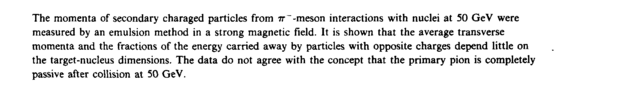 The momenta of secondary charaged particles from ir~ -meson interactions with nuclei at 50 GeV were measured by an emulsion method in a strong magnetic field. It is shown that the average transverse momenta and the fractions of the energy carried away by particles with opposite charges depend little on the target-nucleus dimensions. The data do not agree with the concept that the primary pion is completely passive after collision at 50 GeV.