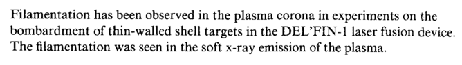 Filamentation has been observed in the plasma corona in experiments on the bombardment of thin-walled shell targets in the DEL/FIN-1 laser fusion device. The filamentation was seen in the soft x-ray emission of the plasma.