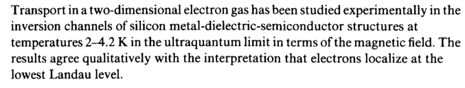 Transport in a two-dimensional electron gas has been studied experimentally in the inversion channels of silicon metal-dielectric-semiconductor structures at temperatures 2-4.2 К in the ultraquantum limit in terms of the magnetic field. The results agree qualitatively with the interpretation that electrons localize at the lowest Landau level.