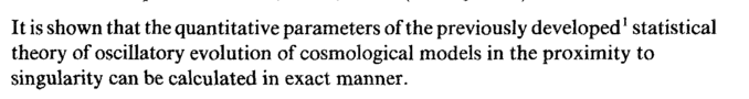 It is shown that the quantitative parameters of the previously developed1 statistical theory of oscillatory evolution of cosmological models in the proximity to singularity can be calculated in exact manner.