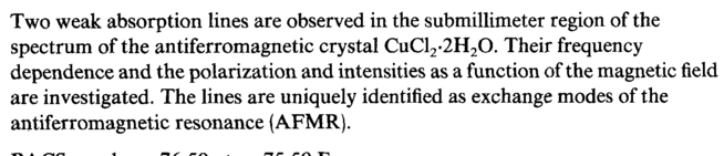 Observation of exchange modes of antiferromagnetic resonance in CuCI2• 2H2O