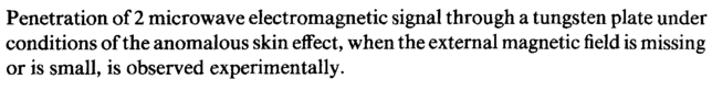 Penetration of 2 microwave electromagnetic signal through a tungsten plate under conditions of the anomalous skin effect, when the external magnetic field is missing or is small, is observed experimentally.