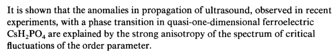 It is shown that the anomalies in propagation of ultrasound, observed in recent experiments, with a phase transition in quasi-one-dimensional ferroelectric CsiI2P04 are explained by the strong anisotropy of the spectrum of critical fluctuations of the order parameter.